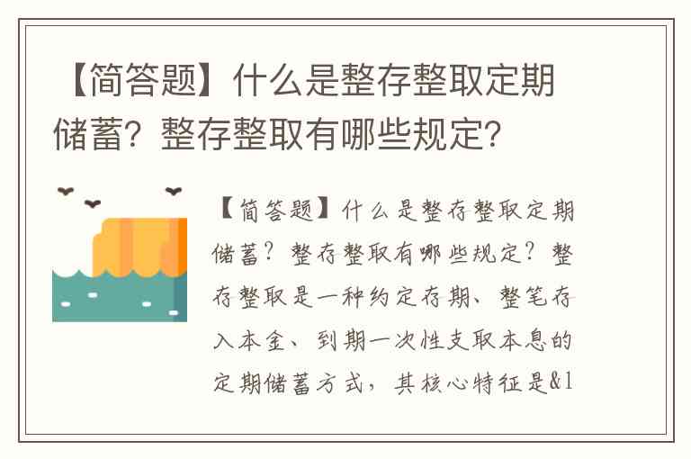 【简答题】什么是整存整取定期储蓄?整存整取有哪些规定?