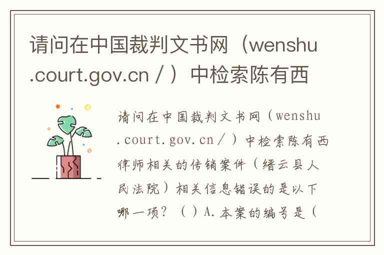 请问在中国裁判文书网(wenshu.court.gov.cn/)中检索陈有西律师相关的传销案件(缙云县人民法院)相关信息错误的是以下哪一项?()A.本案的编号是(2014)丽缙刑初字第398号 B.本案被告人马某当庭提交了陈有西律师关于中国首例电子商务被控传销案的辩护词 C.陈有西律师关于中国首例电子商务被控传销案的辩护词,因不符合证据法定形式,且与本案不具有关联性,故不予采纳 D.该案是由陈有西代理