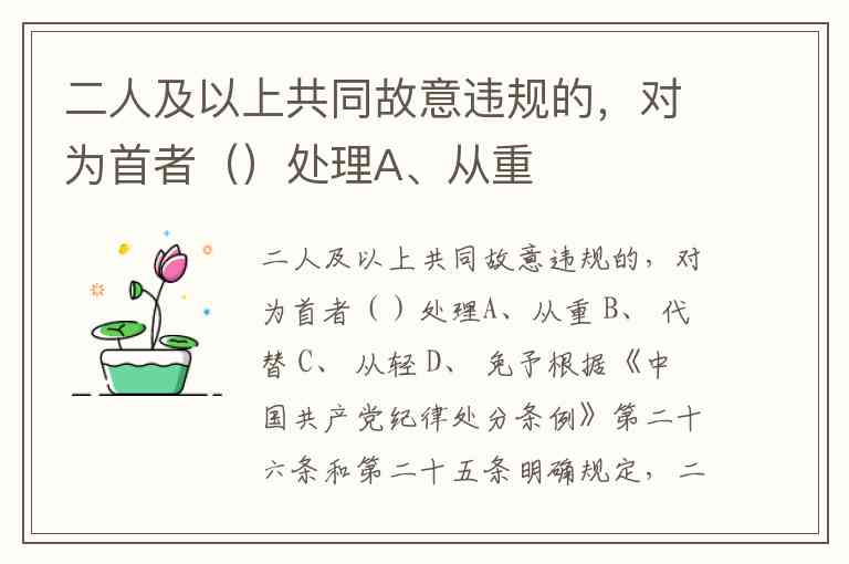 二人及以上共同故意违规的,对为首者()处理A、从重 B、 代替 C、 从轻 D、 免予