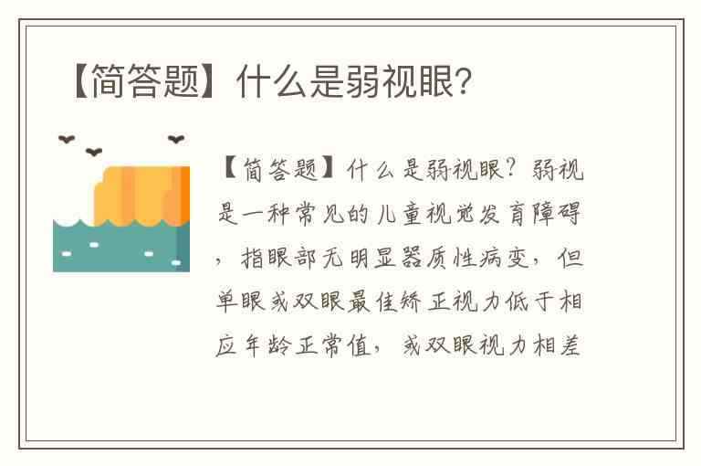 弱视是一种常见的儿童视觉发育障碍,指眼部无明显器质性病变,但单眼或双眼最佳矫正视力低于相应年龄正常值,或双眼视力相差2行及以上(视力较低眼为弱视)。它并非眼球结构异常导致,而是大脑在视觉发育期(通常6岁前)因异常视觉经验抑制部分视觉信号输入,使神经通路发育受阻,就像被“废用”的肌肉会萎缩,弱视眼因长期得不到足够刺激而“功能退化”。
