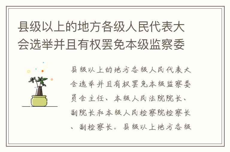 县级以上的地方各级人民代表大会选举并且有权罢免本级监察委员会主任、本级人民法院院长、副院长和本级人民检察院检察长、副检察长。