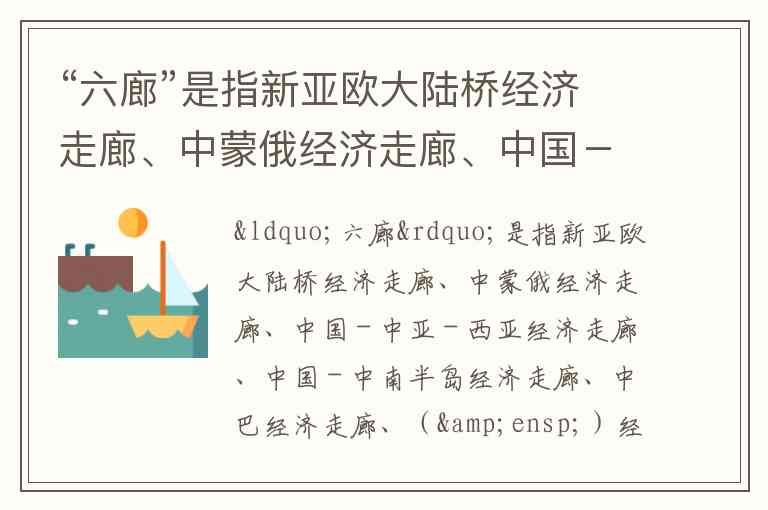 “六廊”是指新亚欧大陆桥经济走廊、中蒙俄经济走廊、中国-中亚-西亚经济走廊、中国-中南半岛经济走廊、中巴经济走廊、( )经济走廊。