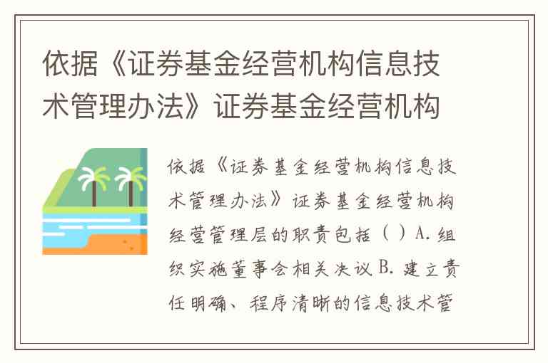 依据《证券基金经营机构信息技术管理办法》证券基金经营机构经营管理层的职责包括()A.组织实施董事会相关决议 B.建立责任明确、程序清晰的信息技术管理组织架构 C.完善绩效考核和责任追究机制 D.明确管理职责、工作程序和协调机制