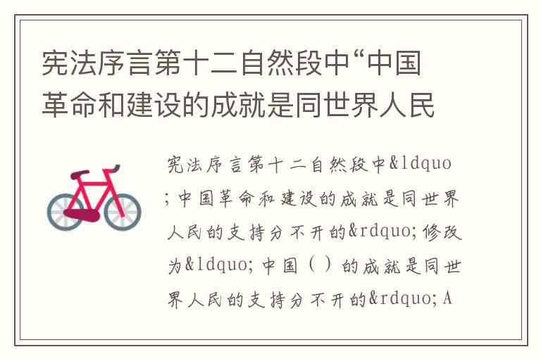 宪法序言第十二自然段中“中国革命和建设的成就是同世界人民的支持分不开的”修改为“中国()的成就是同世界人民的支持分不开的”A.革命 B.建设 C.发展 D.改革
