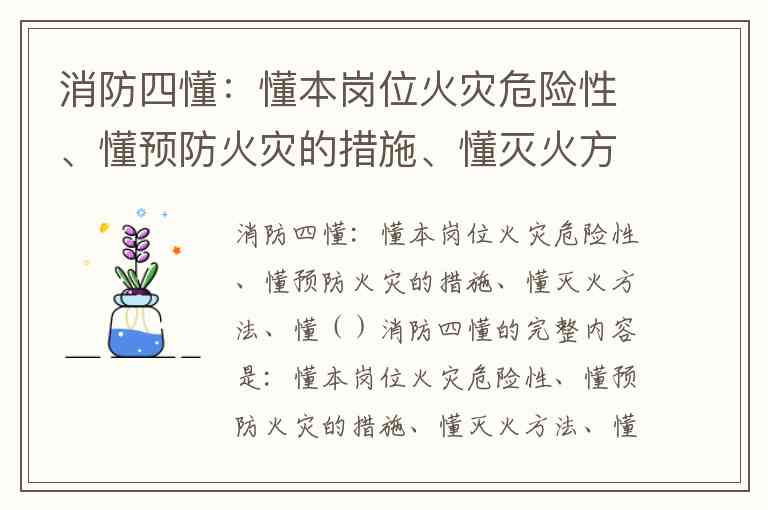 消防四懂:懂本岗位火灾危险性、懂预防火灾的措施、懂灭火方法、懂()