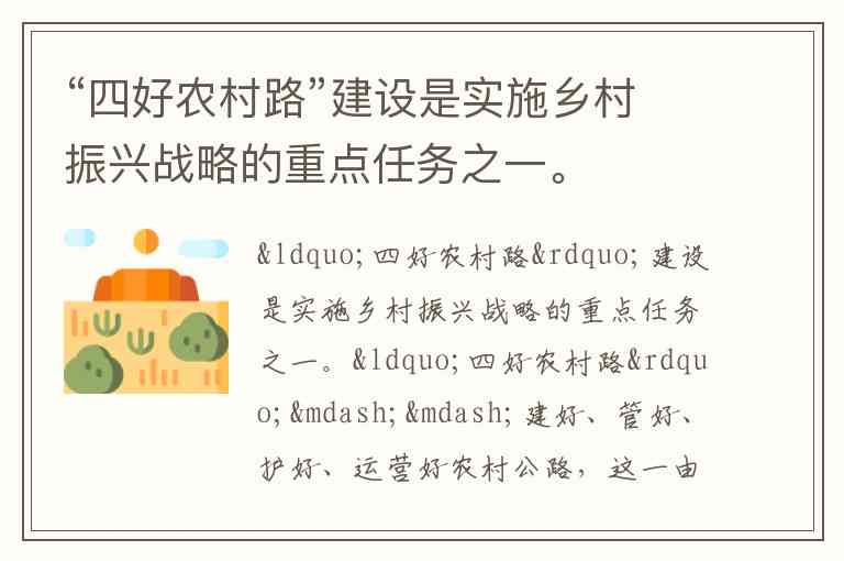 “四好农村路”建设是实施乡村振兴战略的重点任务之一。
