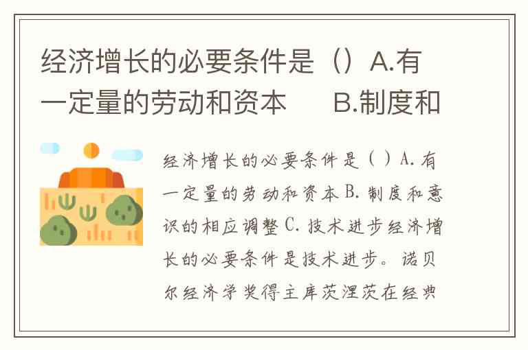 经济增长的必要条件是()A.有一定量的劳动和资本 B.制度和意识的相应调整 C.技术进步