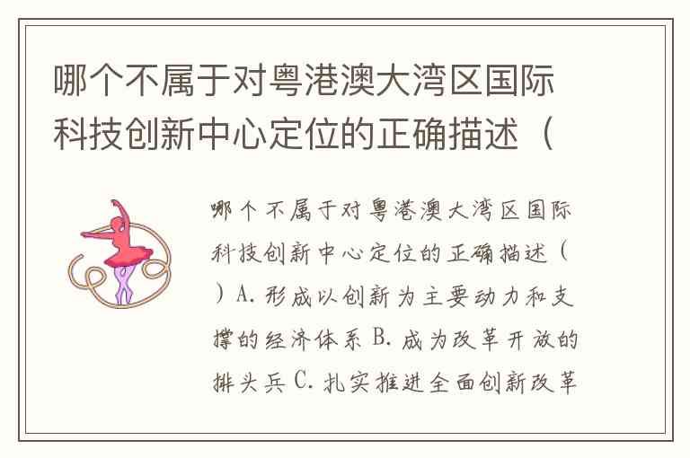 哪个不属于对粤港澳大湾区国际科技创新中心定位的正确描述()A.形成以创新为主要动力和支撑的经济体系 B.成为改革开放的排头兵 C.扎实推进全面创新改革试验 D.建成全球科技创新高地和新兴产业重要策源地