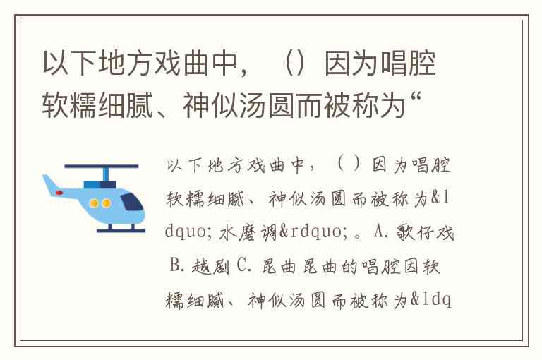 以下地方戏曲中,()因为唱腔软糯细腻、神似汤圆而被称为“水磨调”。A.歌仔戏 B.越剧 C.昆曲