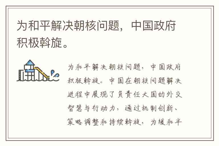 为和平解决朝核问题,中国政府积极斡旋。