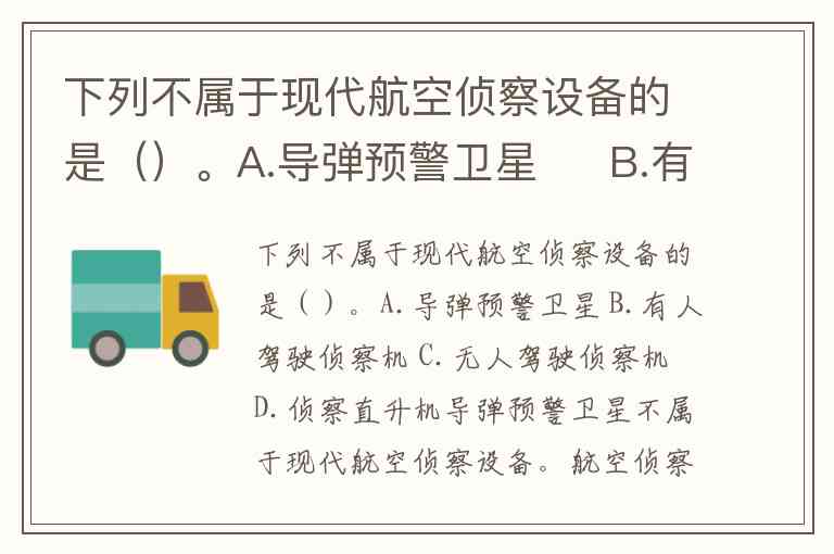 下列不属于现代航空侦察设备的是()。A.导弹预警卫星 B.有人驾驶侦察机 C.无人驾驶侦察机 D.侦察直升机