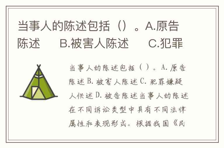 当事人的陈述在不同诉讼类型中具有不同法律属性和表现形式。根据我国《民事诉讼法》和《刑事诉讼法》规定,民事诉讼中的“当事人陈述”与刑事诉讼中的“被害人陈述”“犯罪嫌疑人/被告人供述”分属不同证据类别,需结合诉讼场景具体区分。