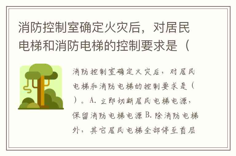 消防控制室确定火灾后,对居民电梯和消防电梯的控制要求是()。A.立即切断居民电梯电源,保留消防电梯电源 B.除消防电梯外,其它居民电梯全部停至首层 C.不管是消防电梯还是居民电梯全部停至首层 D.消防电梯必须停至首层,方便消防员作业,居民电梯没要求