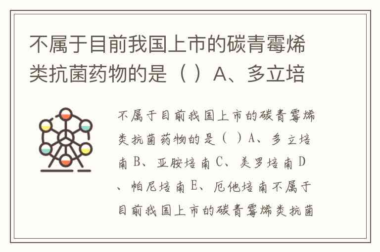 不属于目前我国上市的碳青霉烯类抗菌药物的是( )A、多立培南 B、亚胺培南 C、美罗培南 D、帕尼培南 E、厄他培南