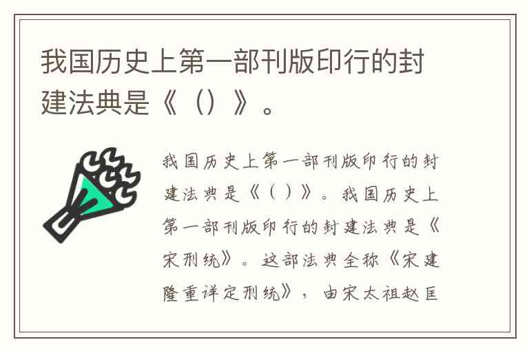 我国历史上第一部刊版印行的封建法典是《宋刑统》。这部法典全称《宋建隆重详定刑统》,由宋太祖赵匡胤于建隆四年(公元963年)命工部尚书判大理寺窦仪主持修订,同年7月完成并诏令“模印颁行”天下。作为宋朝开国后的首部法典,它共12篇502条,沿用《唐律疏议》的基本内容框架,同时首创“刑统”体例,在律文后附编唐朝中期至宋初的敕、令、格、式,并新增“臣等起请”条款。