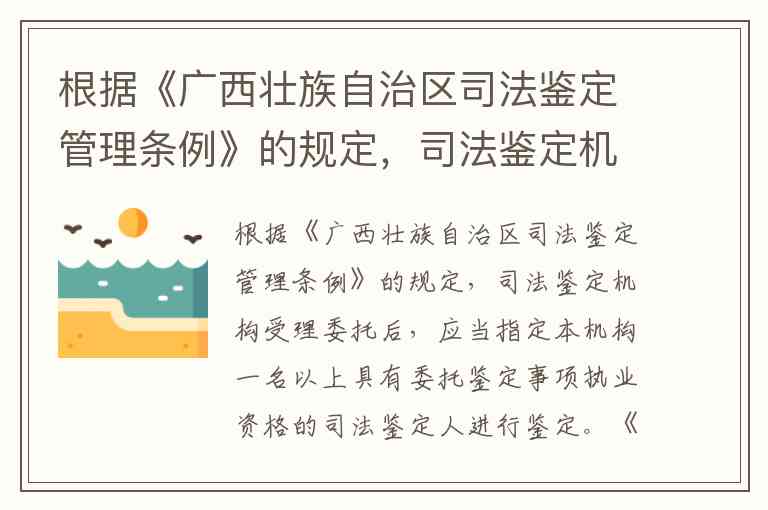 根据《广西壮族自治区司法鉴定管理条例》的规定,司法鉴定机构受理委托后,应当指定本机构一名以上具有委托鉴定事项执业资格的司法鉴定人进行鉴定。
