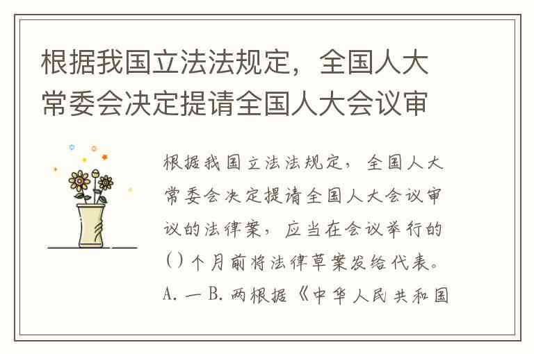 根据我国立法法规定,全国人大常委会决定提请全国人大会议审议的法律案,应当在会议举行的( )个月前将法律草案发给代表。A.一 B.两