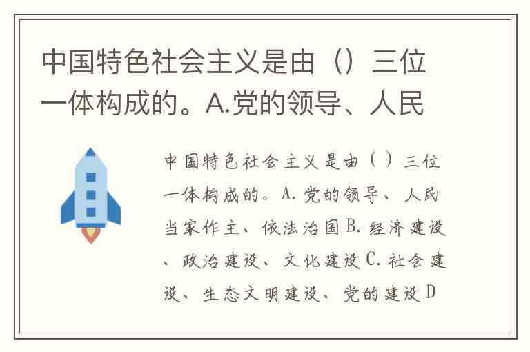 中国特色社会主义是由()三位一体构成的。A.党的领导、人民当家作主、依法治国 B.经济建设、政治建设、文化建设 C.社会建设、生态文明建设、党的建设 D.道路、理论体系、制度