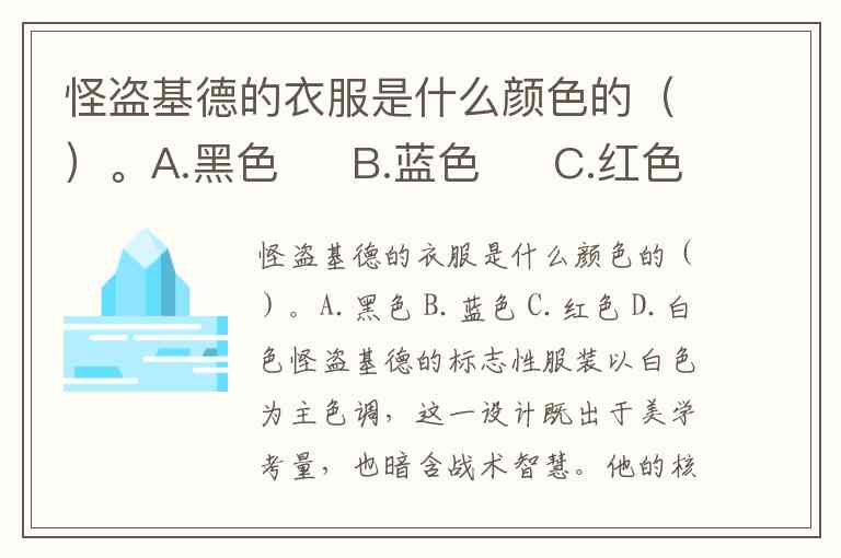 怪盗基德的衣服是什么颜色的()。A.黑色 B.蓝色 C.红色 D.白色