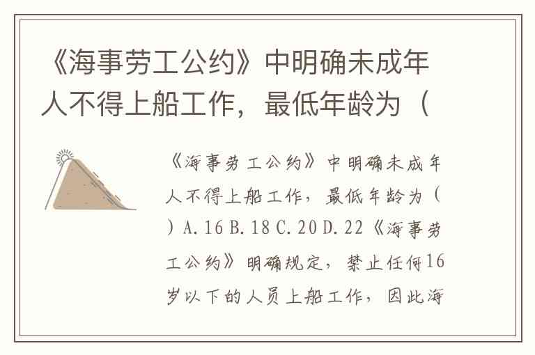 《海事劳工公约》中明确未成年人不得上船工作,最低年龄为()A.16 B.18 C.20 D.22