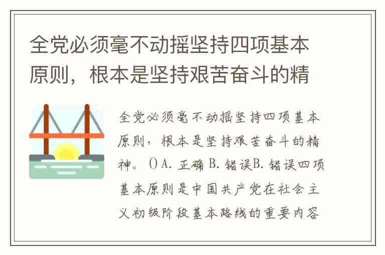 全党必须毫不动摇坚持四项基本原则,根本是坚持艰苦奋斗的精神。()A.正确 B.错误