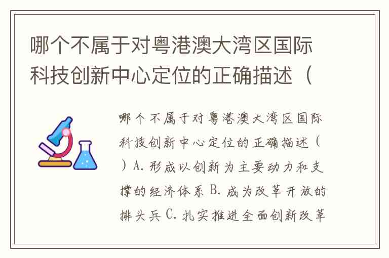 B. 成为改革开放的排头兵不属于对粤港澳大湾区国际科技创新中心的定位描述。这一表述更多指向深圳作为经济特区的历史使命,而非大湾区科技创新中心的核心内涵。
