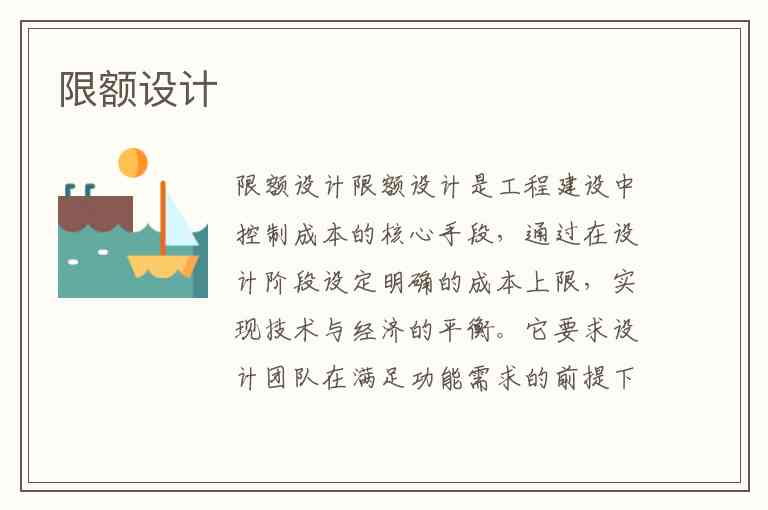 限额设计是工程建设中控制成本的核心手段,通过在设计阶段设定明确的成本上限,实现技术与经济的平衡。它要求设计团队在满足功能需求的前提下,将投资总额分解到各专业和分项工程,并严格控制设计变更,最终确保项目总造价不突破预期限额。这种管理方式的底层逻辑在于,设计阶段决定了项目70%以上的成本,因此从源头把控比事后核算更有效。