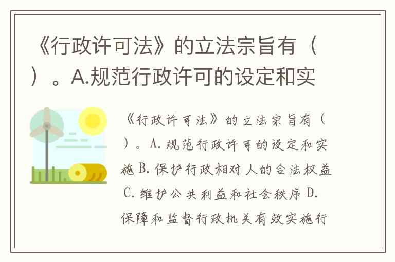 《行政许可法》的立法宗旨有()。A.规范行政许可的设定和实施 B.保护行政相对人的合法权益 C.维护公共利益和社会秩序 D.保障和监督行政机关有效实施行政管理