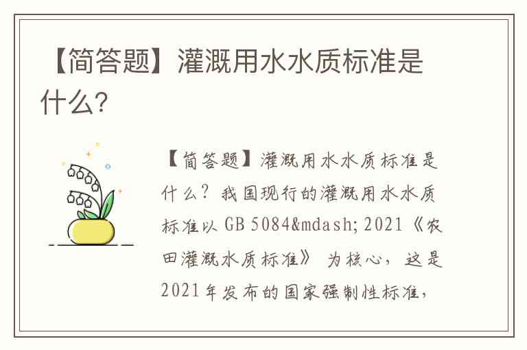 【简答题】灌溉用水水质标准是什么?