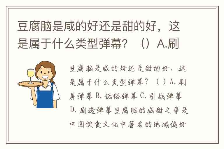 豆腐脑是咸的好还是甜的好,这是属于什么类型弹幕?()A.刷屏弹幕 B.低俗弹幕 C.引战弹幕 D.剧透弹幕