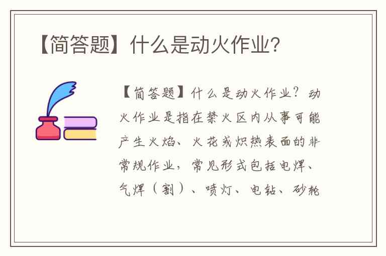 动火作业是指在禁火区内从事可能产生火焰、火花或炽热表面的非常规作业,常见形式包括电焊、气焊(割)、喷灯、电钻、砂轮等工具操作。这类作业因直接或间接产生点火源,在易燃易爆环境中易引发火灾爆炸事故,因此被列为危险作业并实施严格管控。