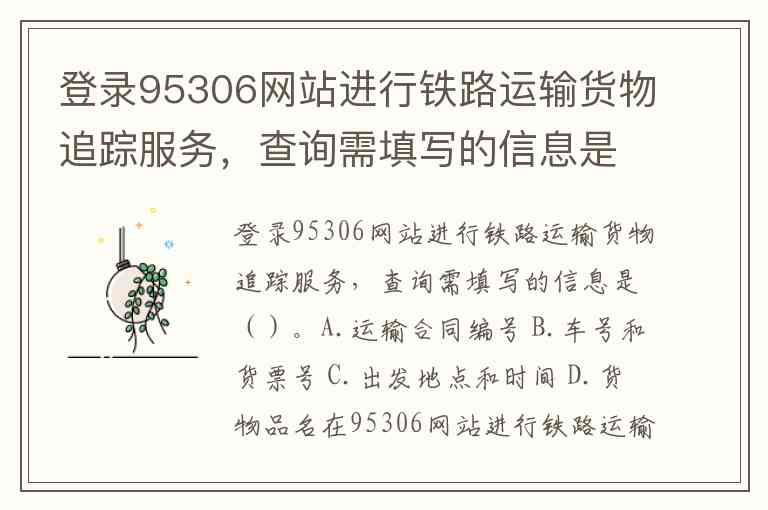 登录95306网站进行铁路运输货物追踪服务,查询需填写的信息是()。A.运输合同编号 B.车号和货票号 C.出发地点和时间 D.货物品名