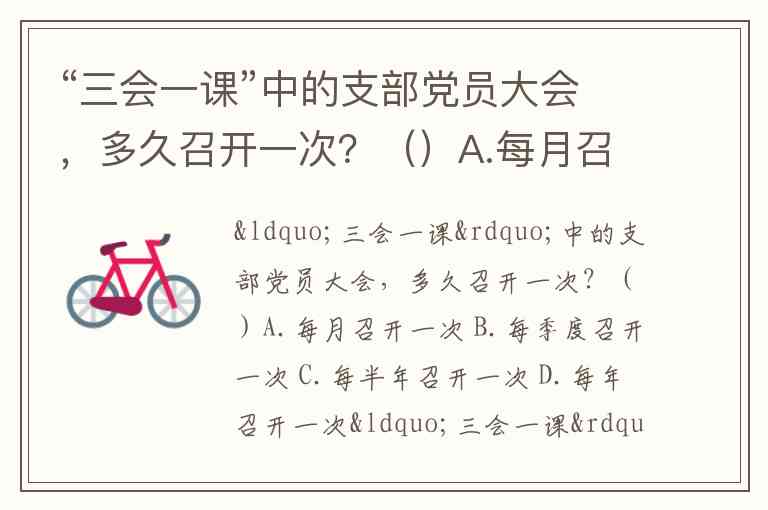 “三会一课”中的支部党员大会,多久召开一次?()A.每月召开一次 B.每季度召开一次 C.每半年召开一次 D.每年召开一次