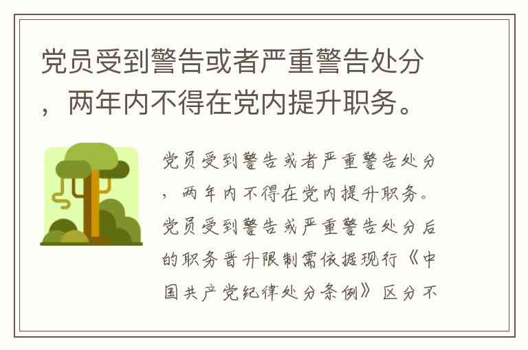 党员受到警告或者严重警告处分,两年内不得在党内提升职务。