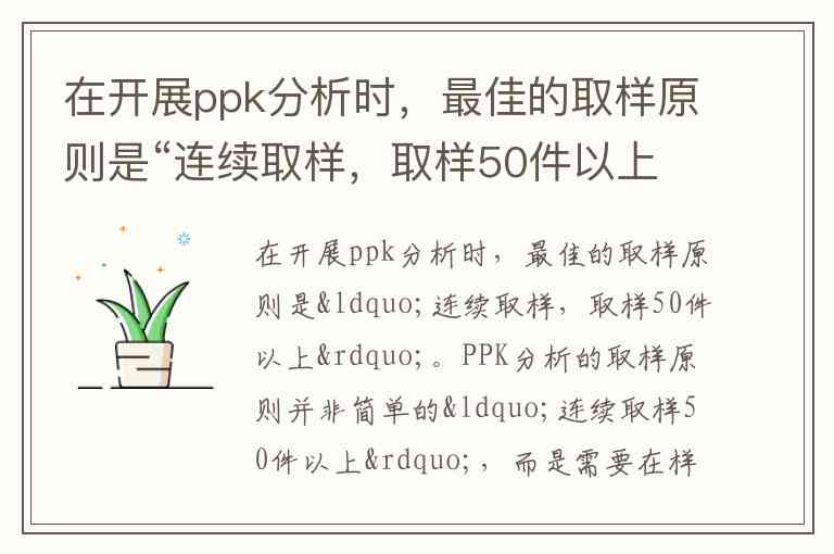 在开展ppk分析时,最佳的取样原则是“连续取样,取样50件以上”。