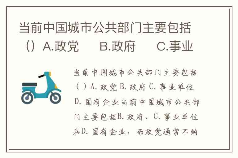 当前中国城市公共部门主要包括()A.政党 B.政府 C.事业单位 D.国有企业