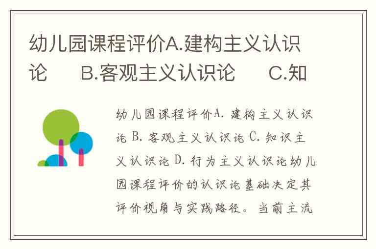 幼儿园课程评价A.建构主义认识论 B.客观主义认识论 C.知识主义认识论 D.行为主义认识论