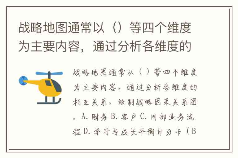 战略地图通常以()等四个维度为主要内容,通过分析各维度的相互关系,绘制战略因果关系图。A.财务 B.客户 C.内部业务流程 D.学习与成长