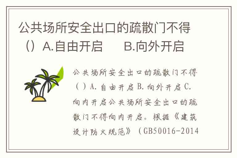 公共场所安全出口的疏散门不得()A.自由开启 B.向外开启 C.向内开启