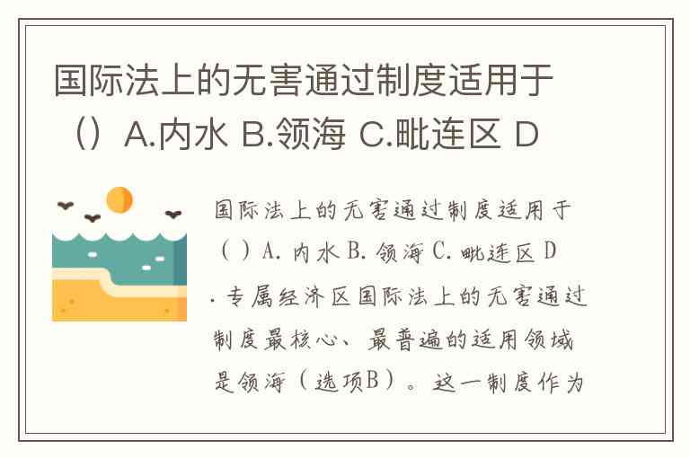 国际法上的无害通过制度适用于()A.内水 B.领海 C.毗连区 D.专属经济区