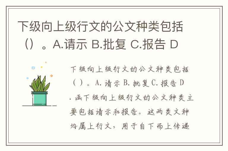 下级向上级行文的公文种类包括()。A.请示 B.批复 C.报告 D.函