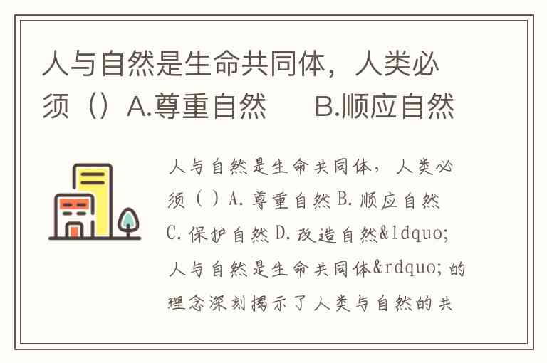 人与自然是生命共同体,人类必须()A.尊重自然 B.顺应自然 C.保护自然 D.改造自然
