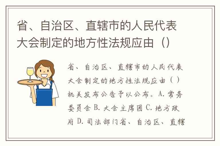 省、自治区、直辖市的人民代表大会制定的地方性法规应由()机关发布公告予以公布。A.常务委员会 B.大会主席团 C.地方政府 D.司法部门