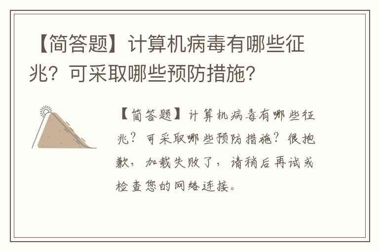 【简答题】计算机病毒有哪些征兆?可采取哪些预防措施?