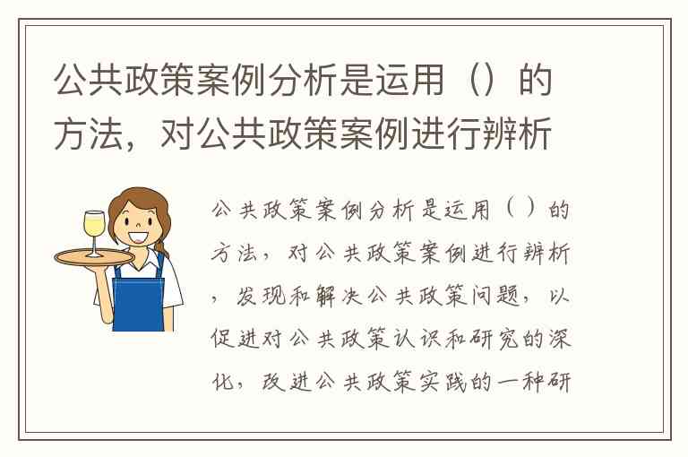 公共政策案例分析是运用定性或定量的方法,对公共政策案例进行辨析,发现和解决公共政策问题,以促进对公共政策认识和研究的深化,改进公共政策实践的一种研究方法。这一方法强调以政策问题为中心,以政策过程为线索,通过多样化工具实现对政策现象的系统性考察。