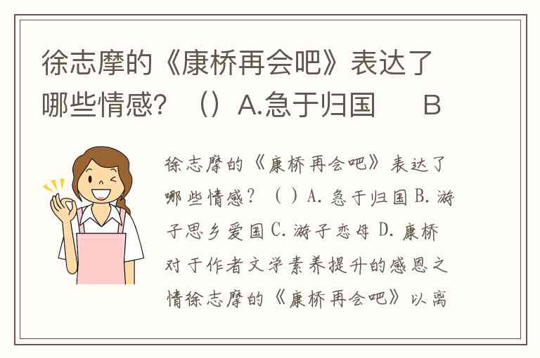 徐志摩的《康桥再会吧》表达了哪些情感?()A.急于归国 B.游子思乡爱国 C.游子恋母 D.康桥对于作者文学素养提升的感恩之情
