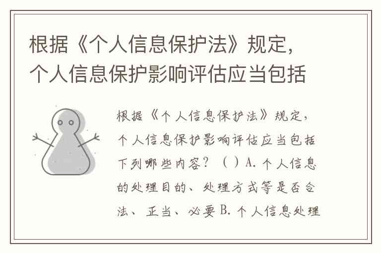 根据《个人信息保护法》规定,个人信息保护影响评估应当包括下列哪些内容?()A.个人信息的处理目的、处理方式等是否合法、正当、必要 B.个人信息处理者的资质 C.所采取的保护措施是否合法、有效并与风险程度相适应 D.对个人权益的影响及安全风险