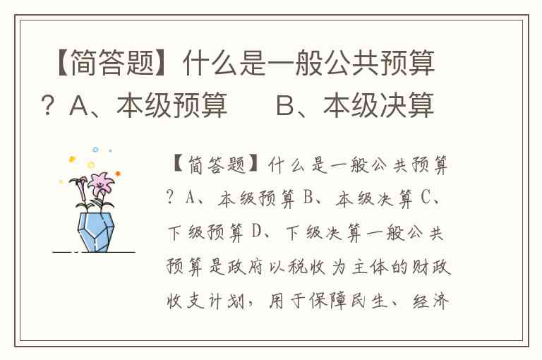 【简答题】什么是一般公共预算?A、本级预算 B、本级决算 C、下级预算 D、下级决算