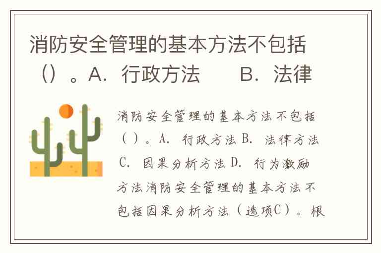 消防安全管理的基本方法不包括()。A.行政方法 B.法律方法 C.因果分析方法 D.行为激励方法