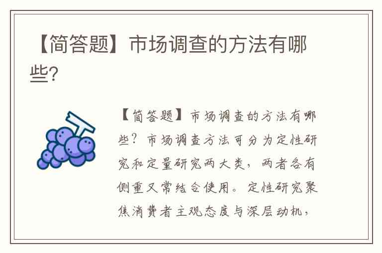市场调查方法可分为定性研究和定量研究两大类,两者各有侧重又常结合使用。定性研究聚焦消费者主观态度与深层动机,如通过深度访谈探索购买行为背后的心理;定量研究则注重数据量化分析,如用问卷调查统计市场规模。以下是具体方法及应用场景: